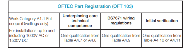 OFT103 Electrical Part P registration enables you to self-certify electrical work in accordance with Regulations 4 and 7 of the Building Regulations 2000 (as amended). Under the Building Safety Regulator (BSR) and Welsh Government  authorisation this is an annual registration scheme and will be subject to an annual on-site visit by an appointed technical expert. This site visit is to assess competence and sample work to give assurance that the technician is continuing to comply with the requirements of the Electrotechnical Assessment Specification (EAS), BS7671 and Approved Document P. Registrants on the OFT 103 scheme will have access to a free technical helpline via OFTEC.